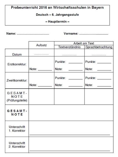 Probeunterricht 2016 Deutsch 6. Jahrgangsstufe
