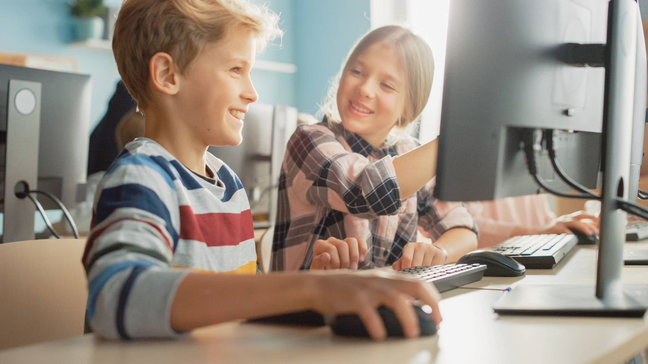 Wir denken: der Unterricht von gestern passt nicht in die Welt von heute, denn die Digitalisierung ist heute ein selbstverständlicher Teil unserer Gesellschaft und Kultur. Neue Konzepte testen wir oft sehr frühzeitig, um sie dann mit den gewonnenen Erfahrungen breit einzusetzen: So kamen auch die ersten Computer, das Internet und die Gigabit-Vernetzung sehr schnell bei uns zum Einsatz. 2021 haben wir alle unsere Klassenzimmer in digitale Lernräume verwandelt. Unsere Gedanken gehen aber über die Schulräume hinaus: Unsere Schüler können auf Wunsch kostenlose Lizenzen für Microsoft Office erhalten. Mit einem internetbasierten Evaluationssystem holen wir regelmäßig anonymes Feedback von Schülern und Eltern ein. Das ist für uns: zeitgemäße Schule. Mit digitalen Mitteln.